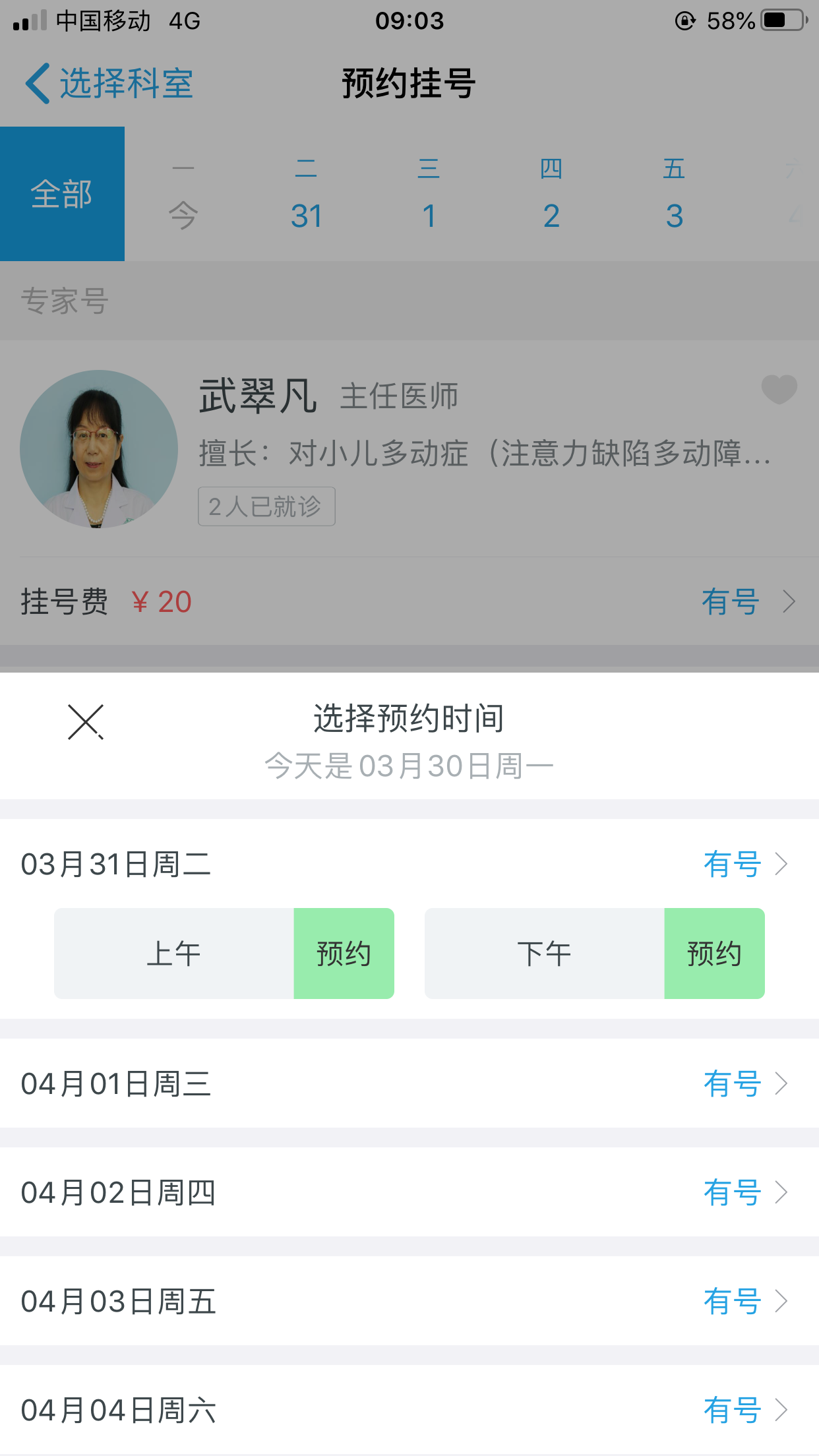 6.选择预约挂号时间
